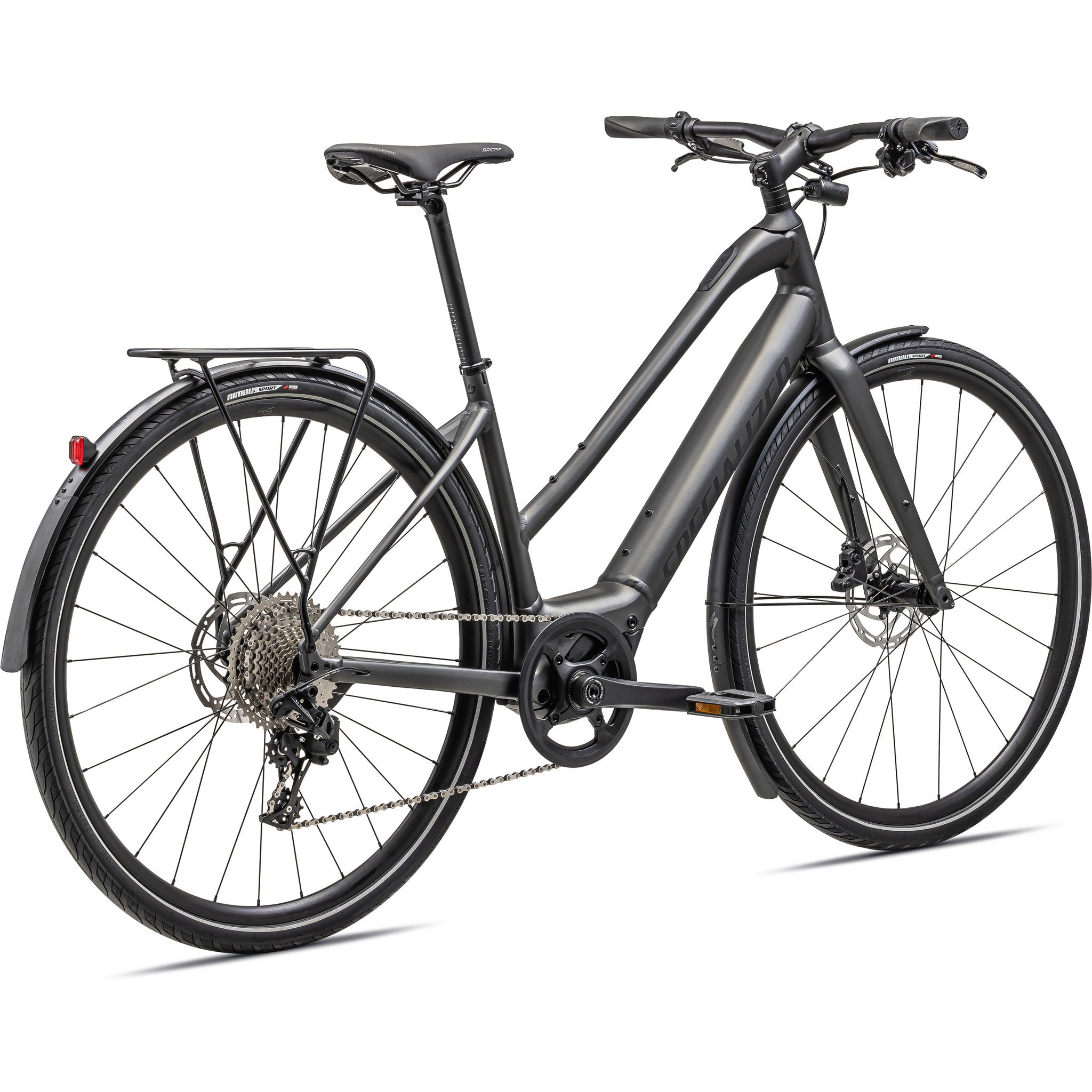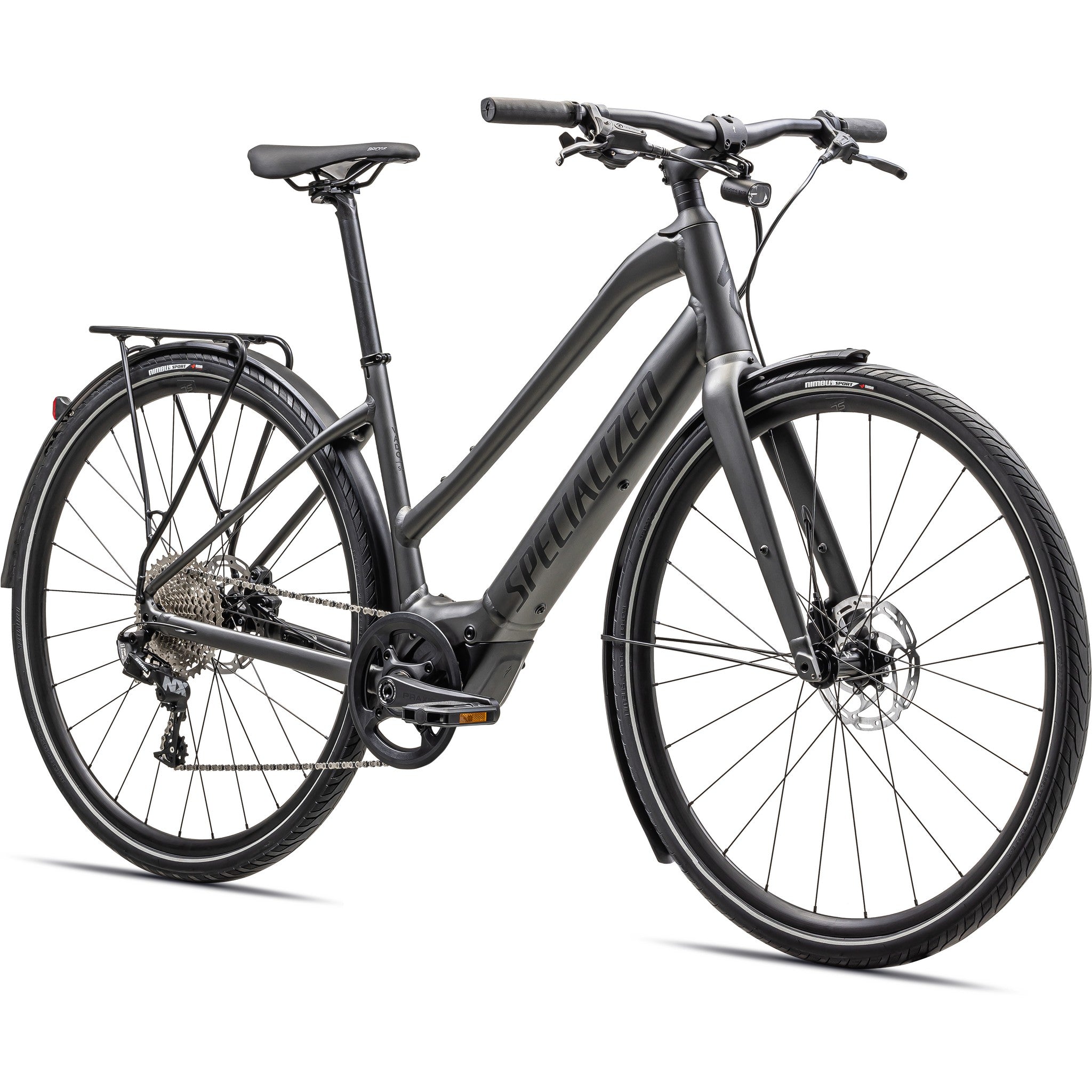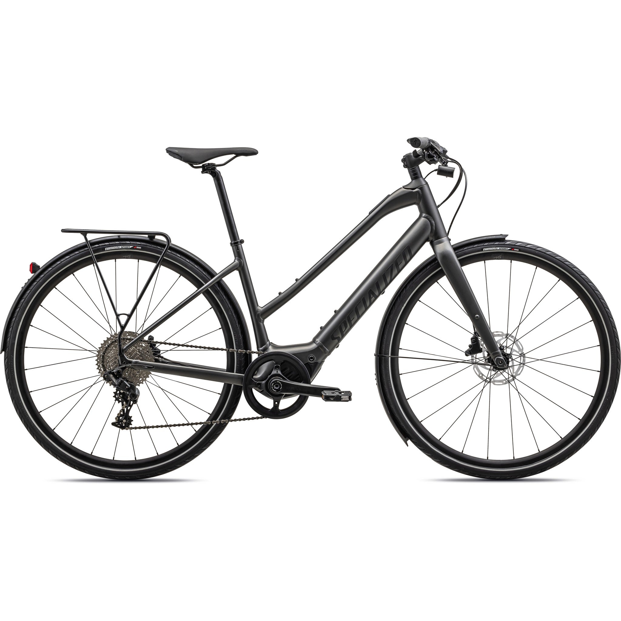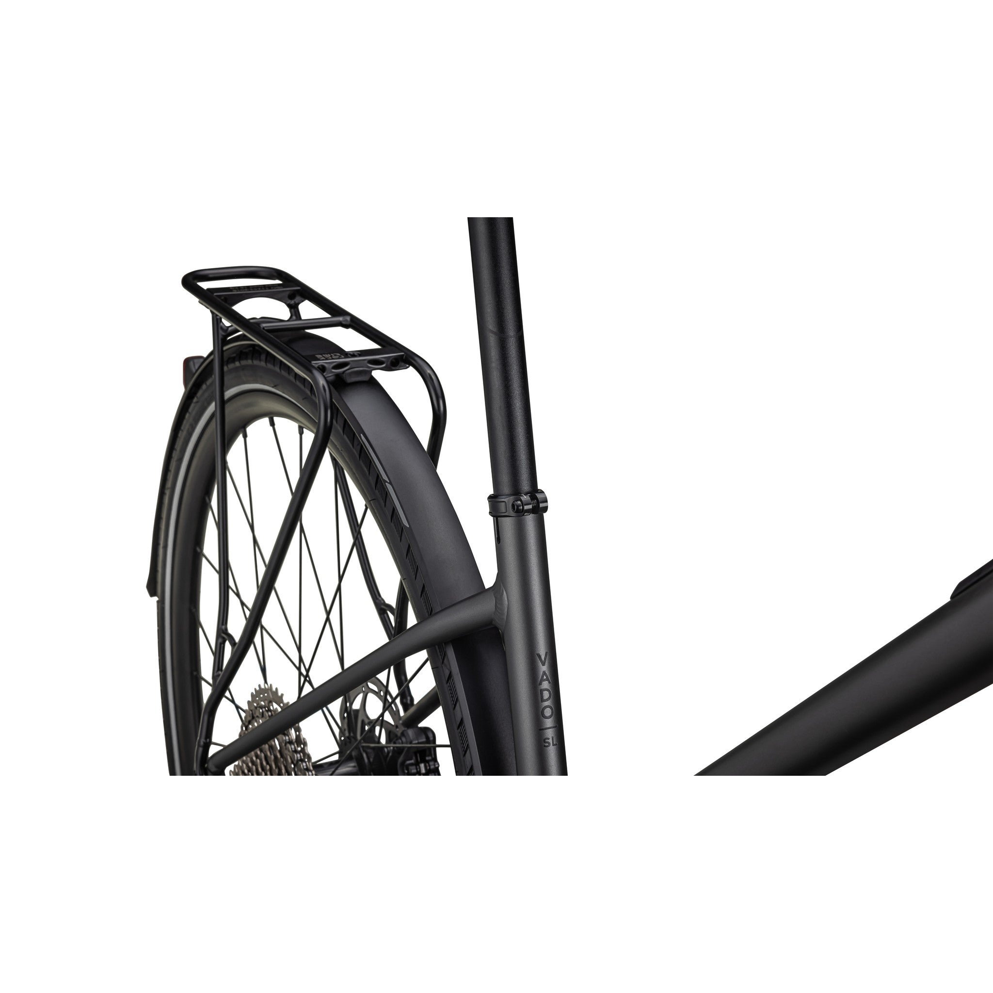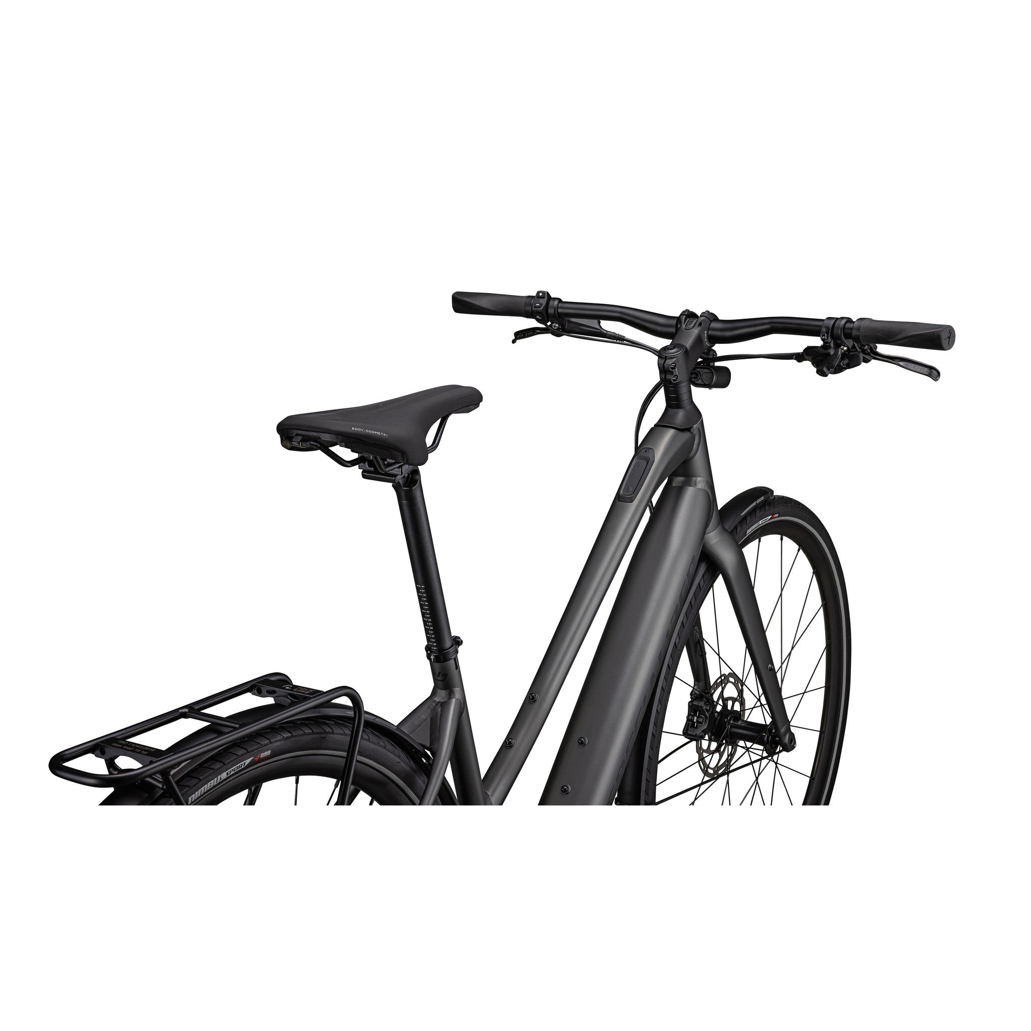 - Turbo SL mounted rear rack, Racktime-compatible for your favorite bags and panniers, and DRYTECH fenders to keep the spray away.