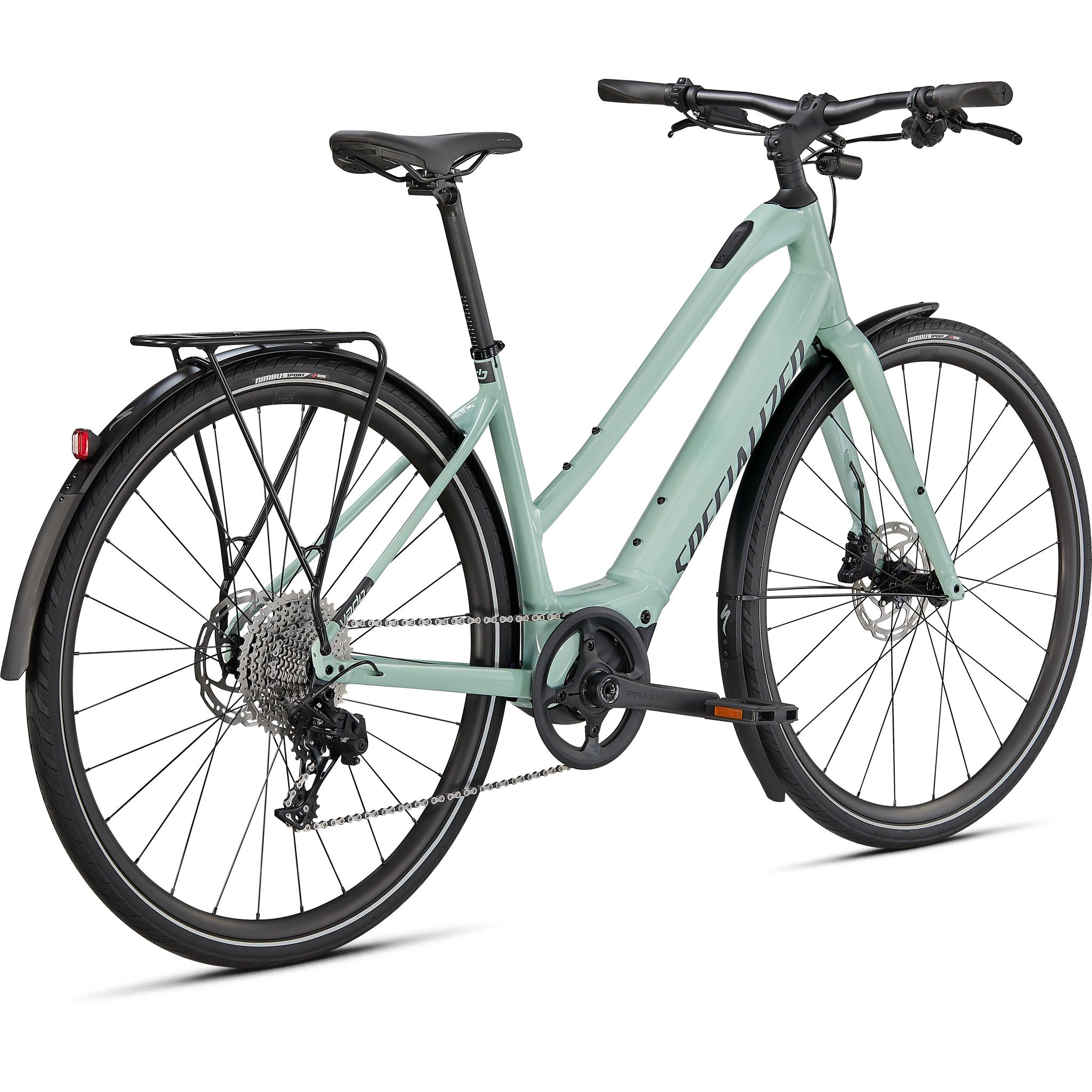 - Turbo SL mounted rear rack, Racktime-compatible for your favorite bags and panniers, and DRYTECH fenders to keep the spray away.