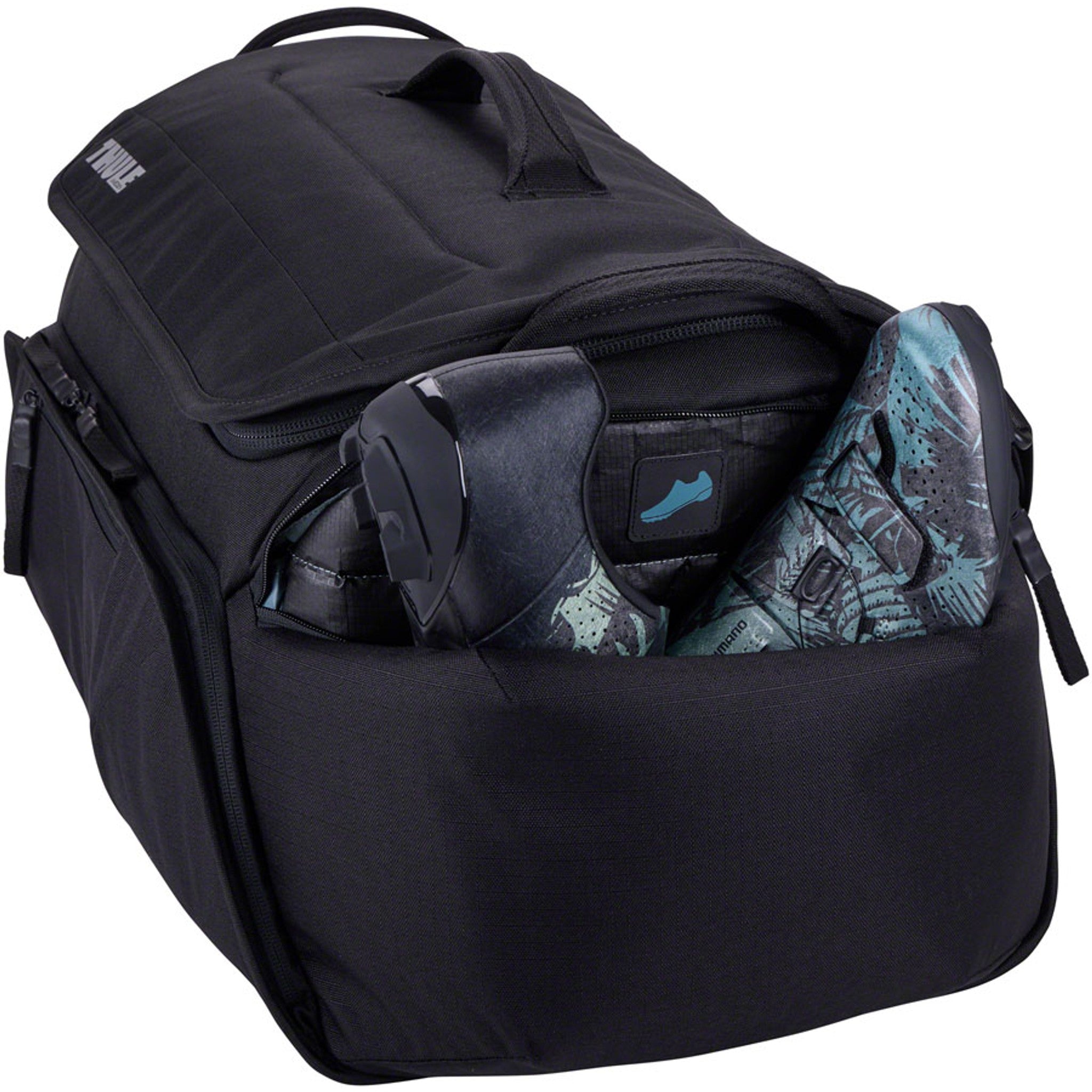 There's a reason why the Thule RoundTrip bike duffel is a favorite among cyclists. This bike gear bag is built with infinite organization to house wearables and accessories for one ride to the next. Smart storage solutions include the shoe compartment lined with tarpaulin for easy cleaning, a dedicated helmet compartment, and a lid pocket for sweaty clothing. Packing everything is easy thanks to the bag's wide mouth opening, and with a capacity of 55L it's perfect for 3-5 days of road bike or mountain bike gear.