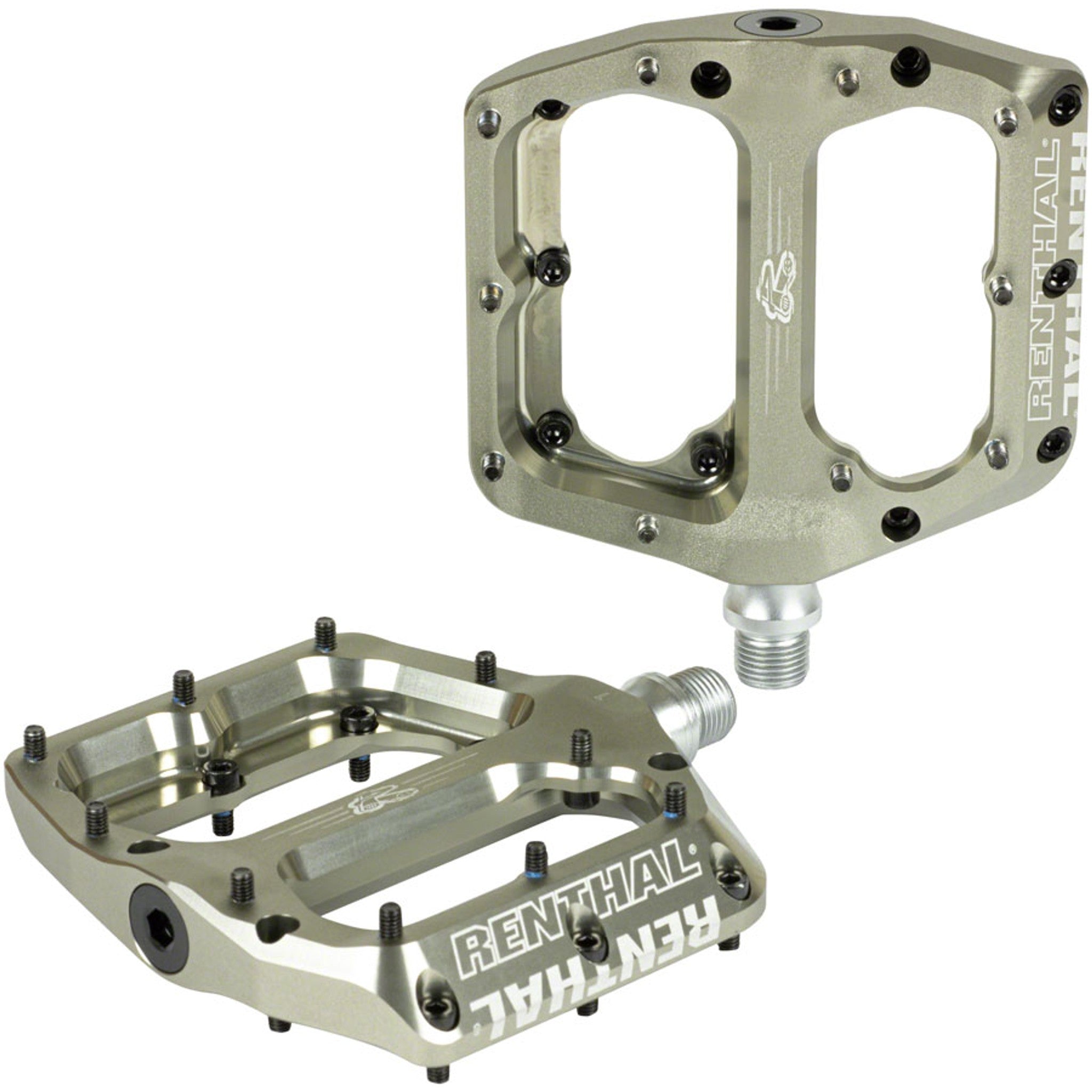 With Ride-Tuned external features and patent pending internals, the Revo-F is the new flat pedal of choice. Featuring a two-axis concave pedal body, fully useable pedal platform and a pin system for fine tuning grip levels, the Revo-F offers unrivalled on-trail performance. The Revo-F spins on an extra wide Igus bush and three cartridge bearings, with the internals fully sealed from the elements. Patent pending internals allow easy home maintenance, using standard tools. The Renthal Revo-F is packed with unique features to deliver the ultimate Ride-Tuned on trail performance, tuneable grip levels, ease of maintenance and bomb-proof durability.