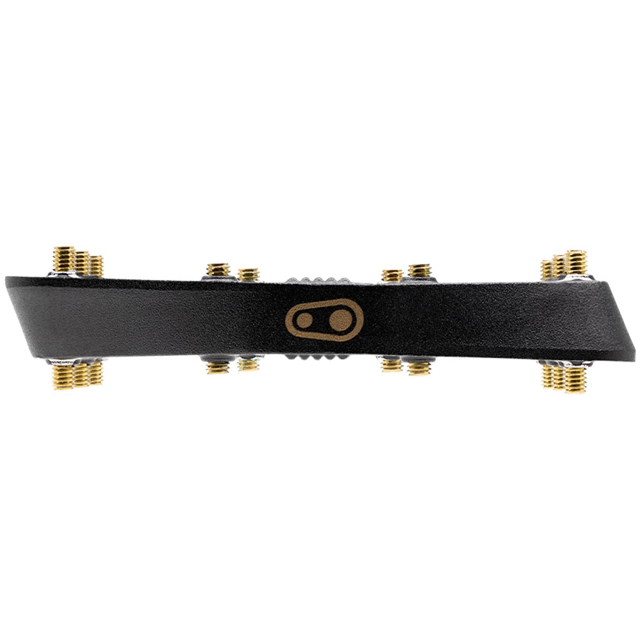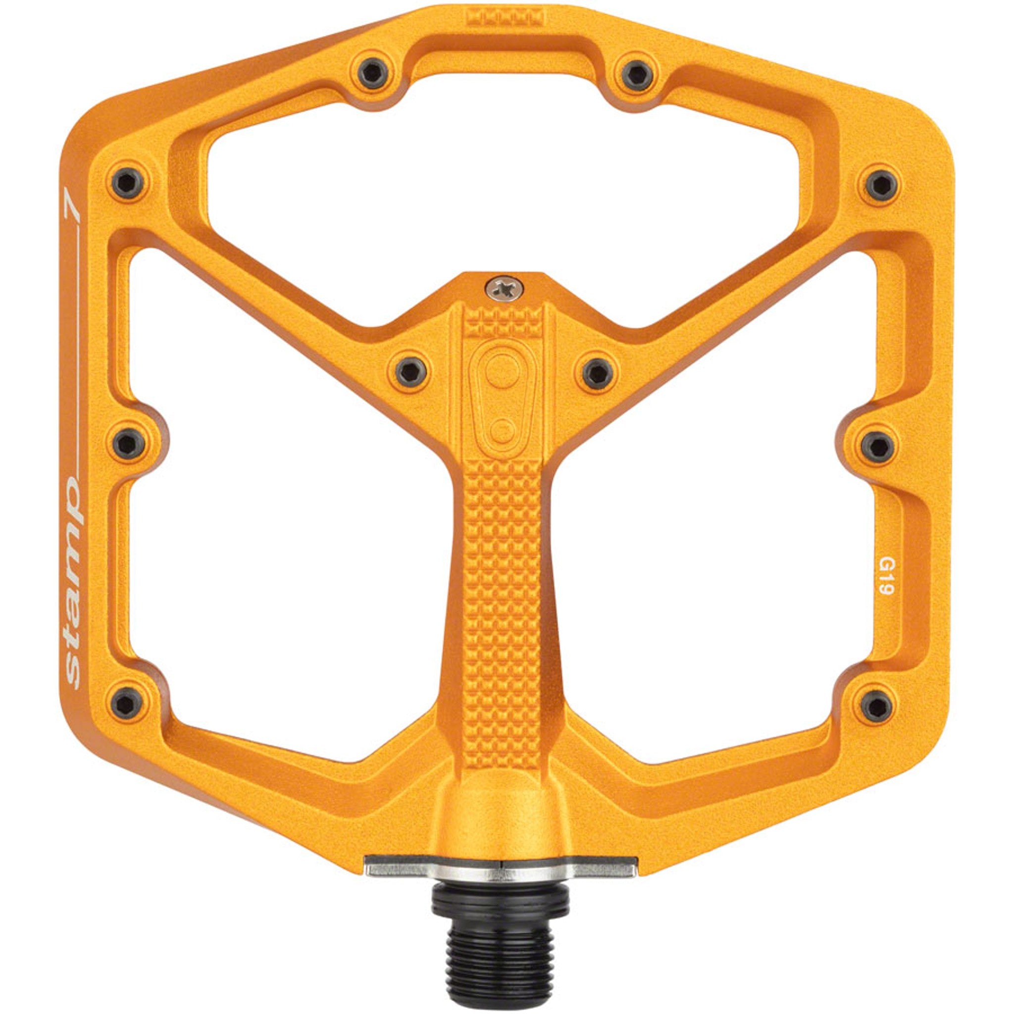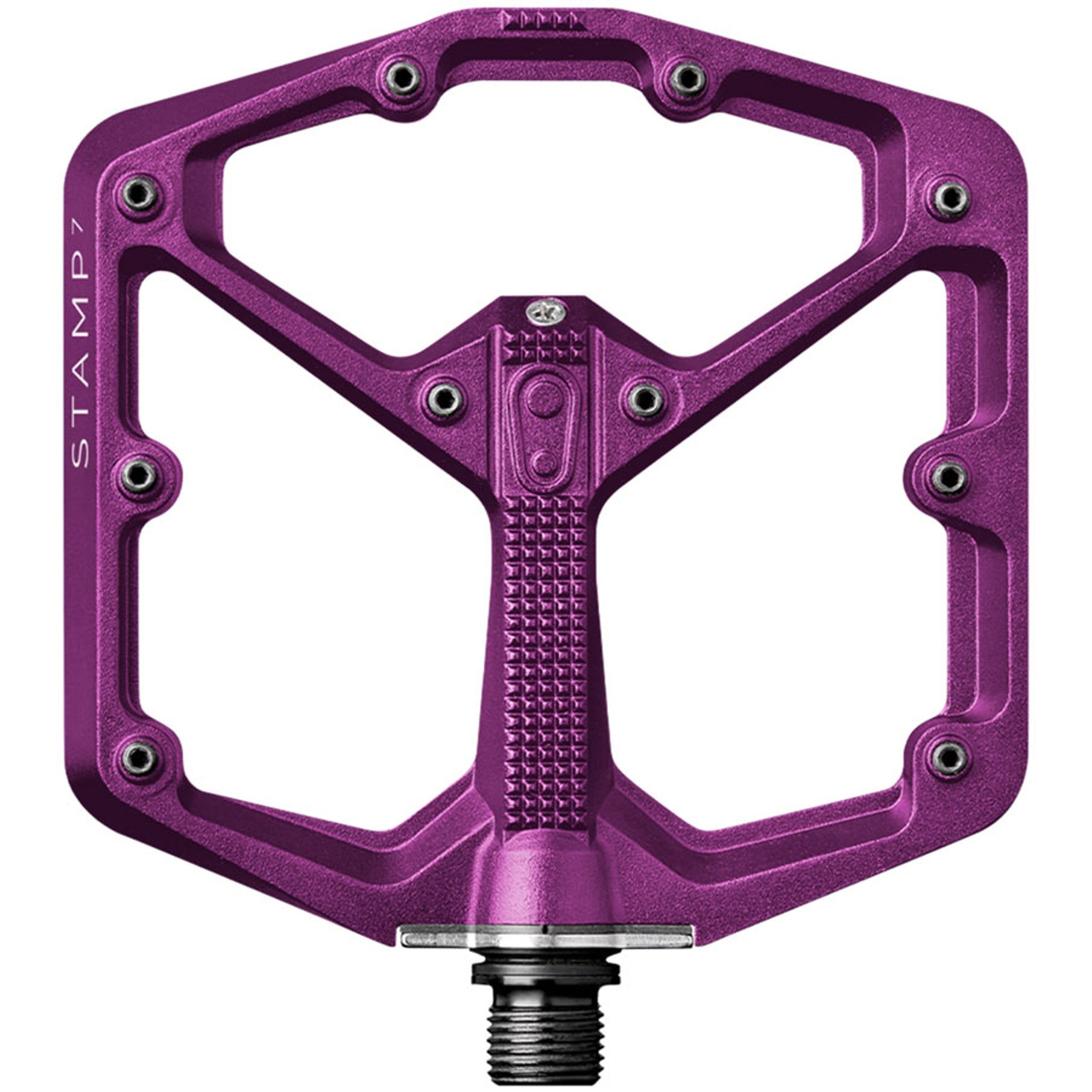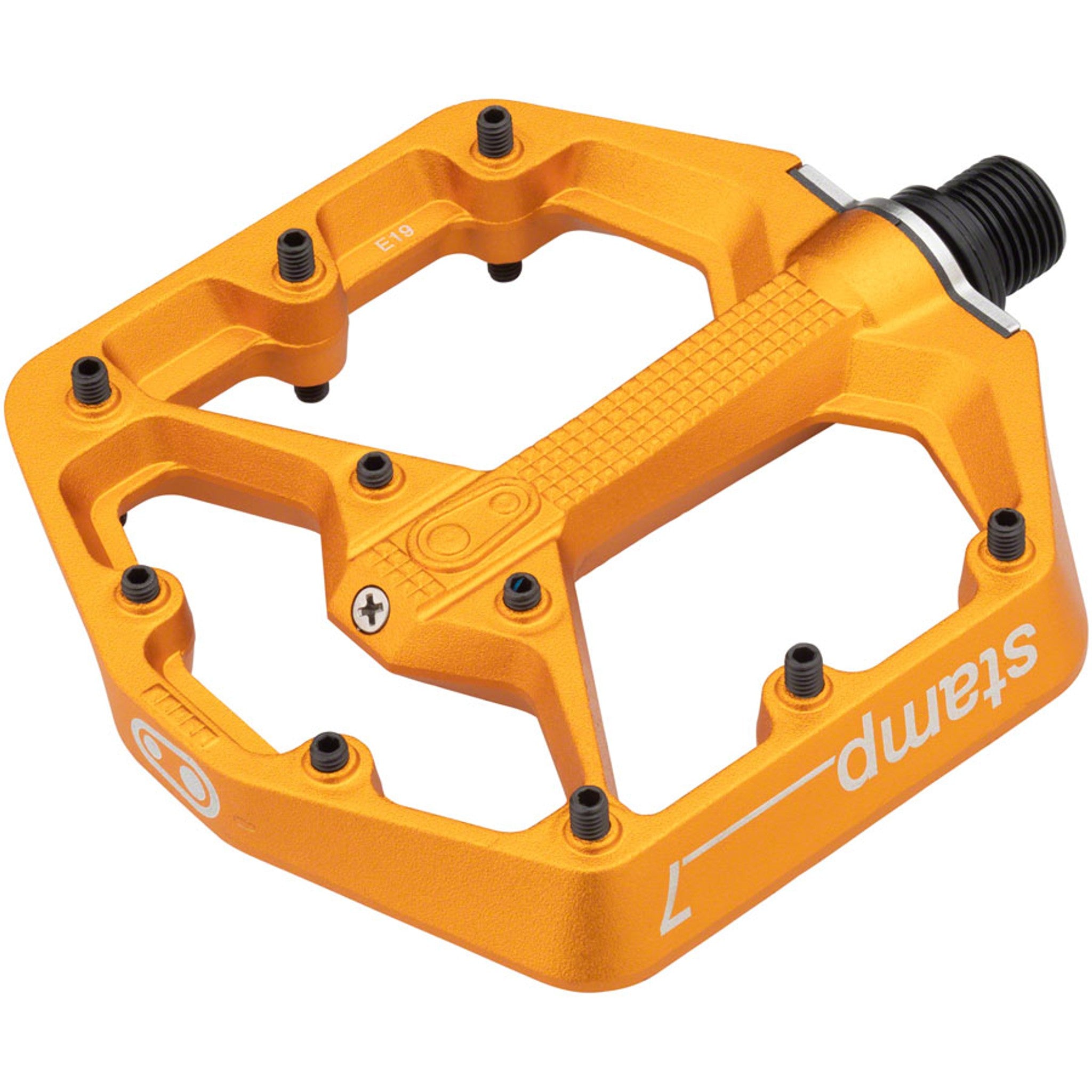 Minimal profile, concave platform pedal has 10 adjustable pins per side for maximum grip. Stamp pedals are optimized for different shoe sizes by providing both Large and Small.