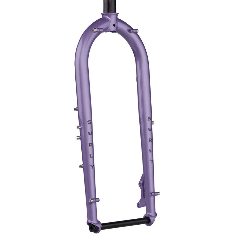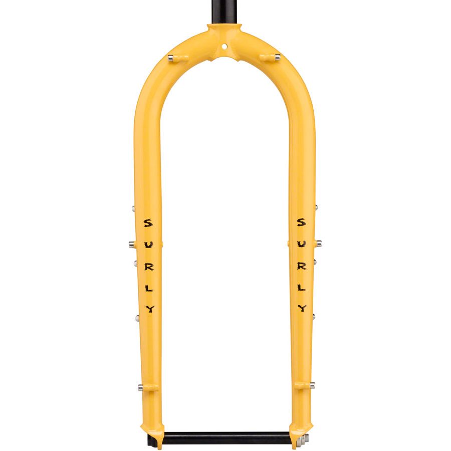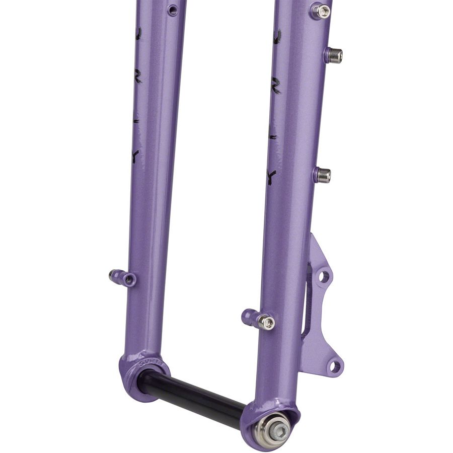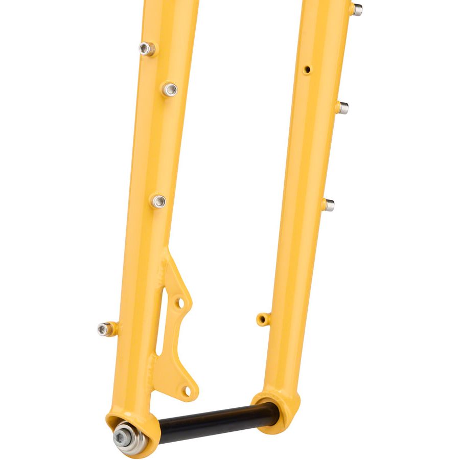 The Ice Cream Truck fork is made from 4130 CroMoly steel, features butted and tapered blades, and is designed for the Ice Cream Truck frame. It has barrel bosses at the dropouts and crown, mid-blade thru-blade eyelets and triple bottle bosses on both fork legs. That’s a lot of bosses. 51mm I.S. mounts use front disc spacing.