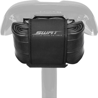 So you like to keep your rig running minimalist but practical? Maybe you prefer to tape a spare tube and CO2 to your frame to keep the profile and weight low? The Bandit is the best of both worlds in terms of simplicity and utility for mountain riders. Its compact form bolts under your SWAT compatible saddle and features a simple, Velcro strap with individual compartments for tube, CO2, and tire lever. One rip of the strap and you’re in, with easy to access everything you need to fix a flat in the middle of a race, when time is of the essence.