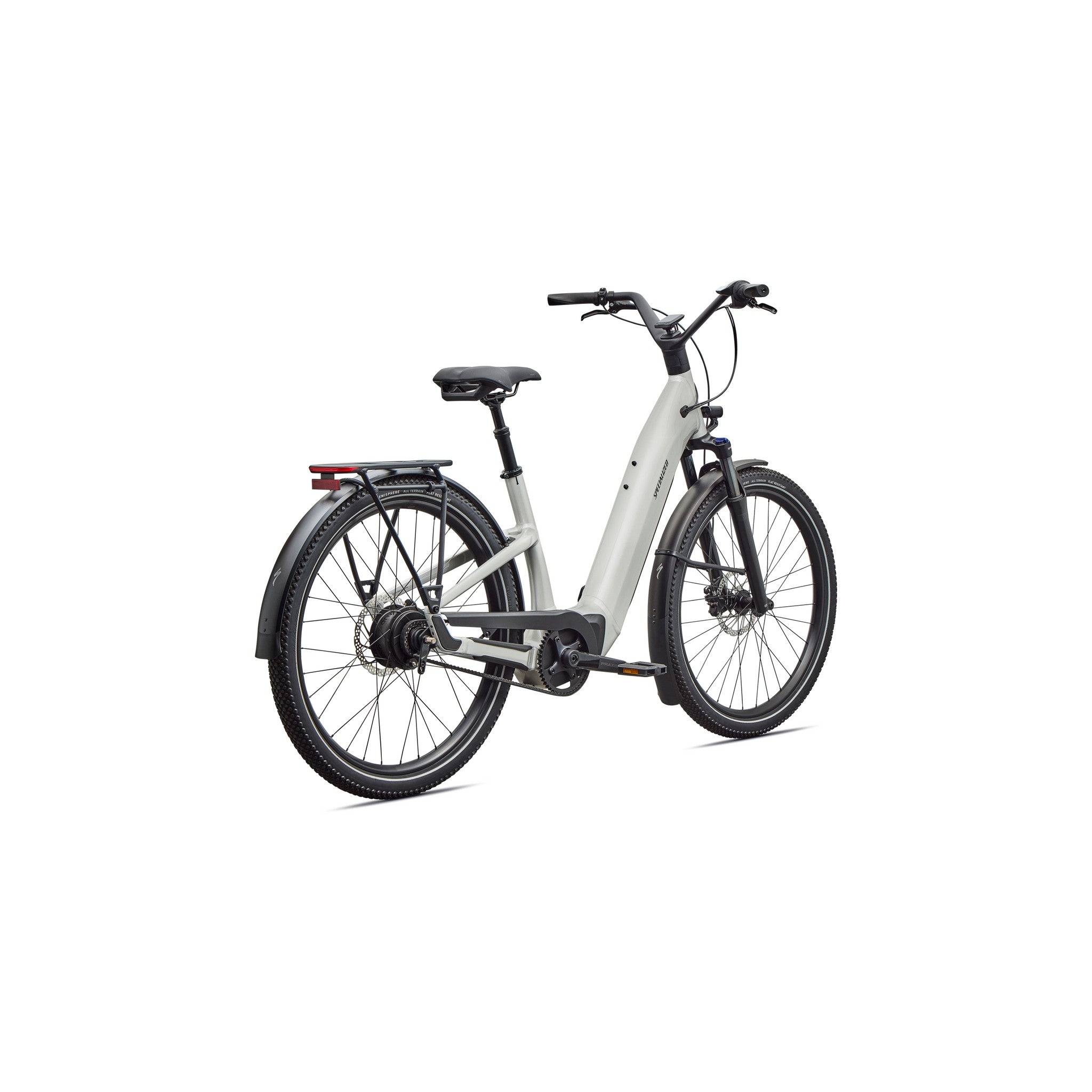 - Equipped with DRYTECH Fenders, LED front and rear lights, and 27kg capacity rear HD Rack. The rear rack is compatible with child bike seats, and the bike is also rated to pull a thru-axle trailer.