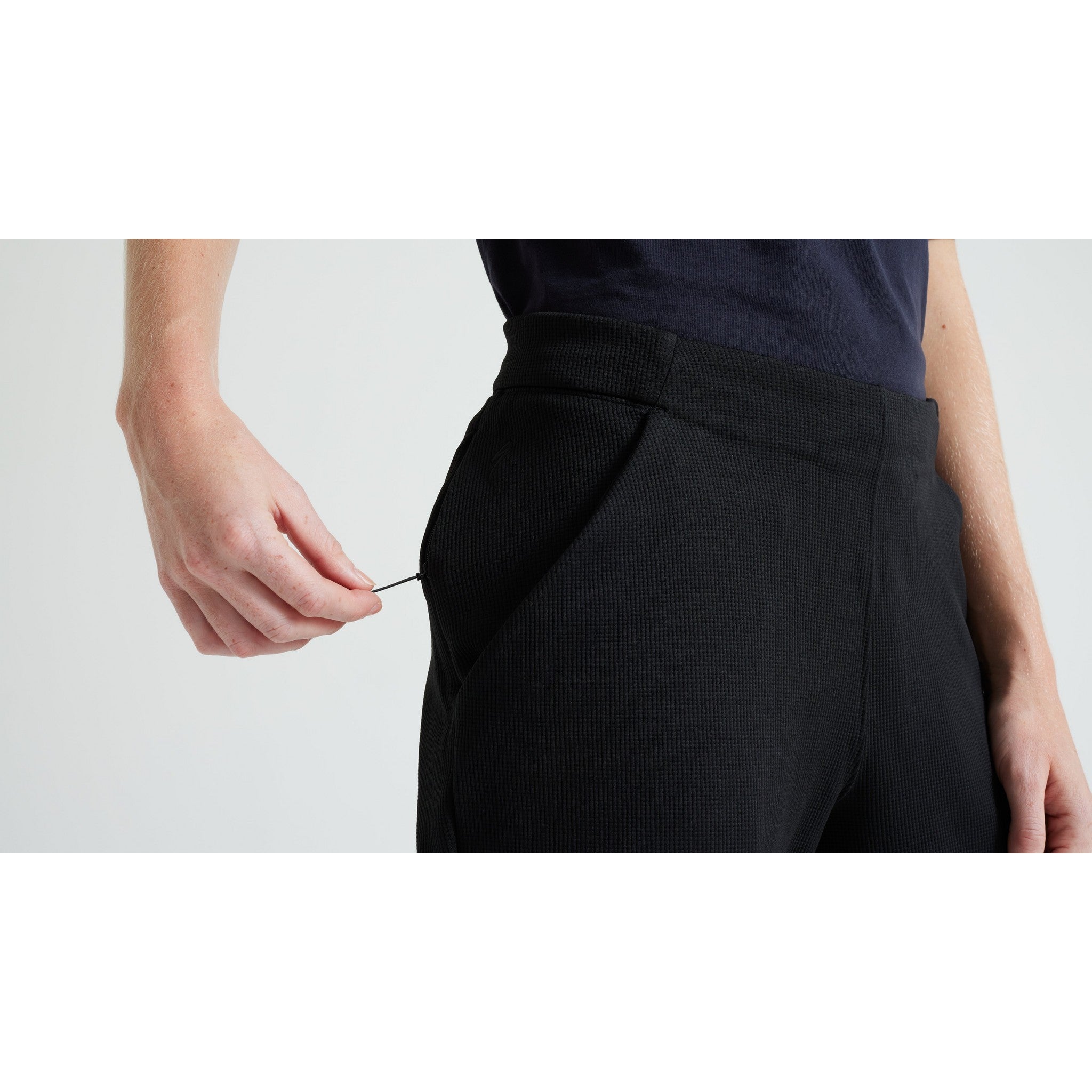 Step up your post-ride comfort with the Women's Track Pant. Designed with a soft waffle knit, these pants strike the perfect balance between warmth and lightweight comfort. Featuring two open side pockets and a secure back zipper pocket, they offer plenty of room for your essentials. The adjustable waistband ensures a personalized fit, while the slim tapered legs with waffle knit cuffs offer a secure, comfortable feel. Made from sustainable materials, they’re the perfect blend of performance and eco-conscious style.